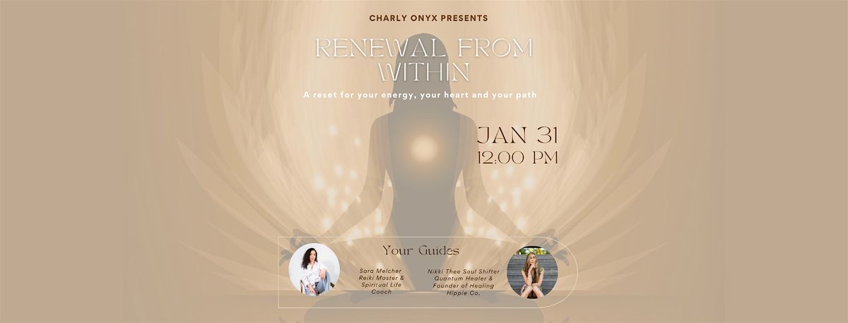 Charly Onyx presents a wellness event, Renewal from Within. In collaboration with Spiritual life coach Sara M. and Quantum Healer, Nikki "Thee Soul Shifter"., we bring you a day of coaching, healing and empowerment to bring you back to alignment with yourself and your path.