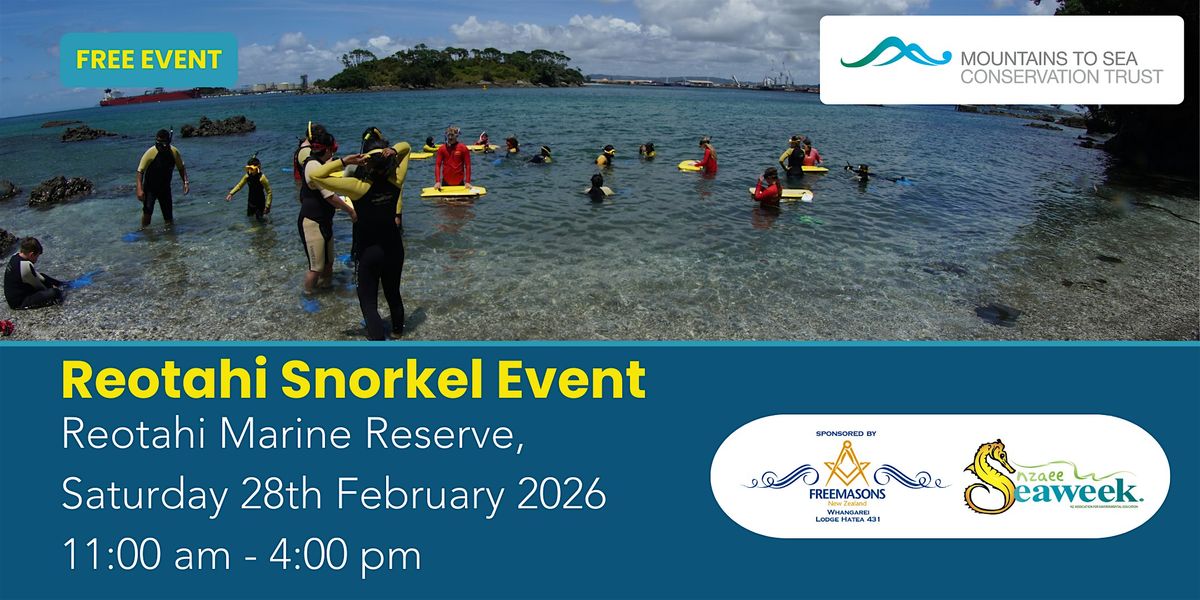 Come and explore the Reotahi Marine Reserve from below the waterline with the Mountains to Sea team. Join us for a day of snorkelling with our experienced volunteer guides. Fun for the whole whānau.