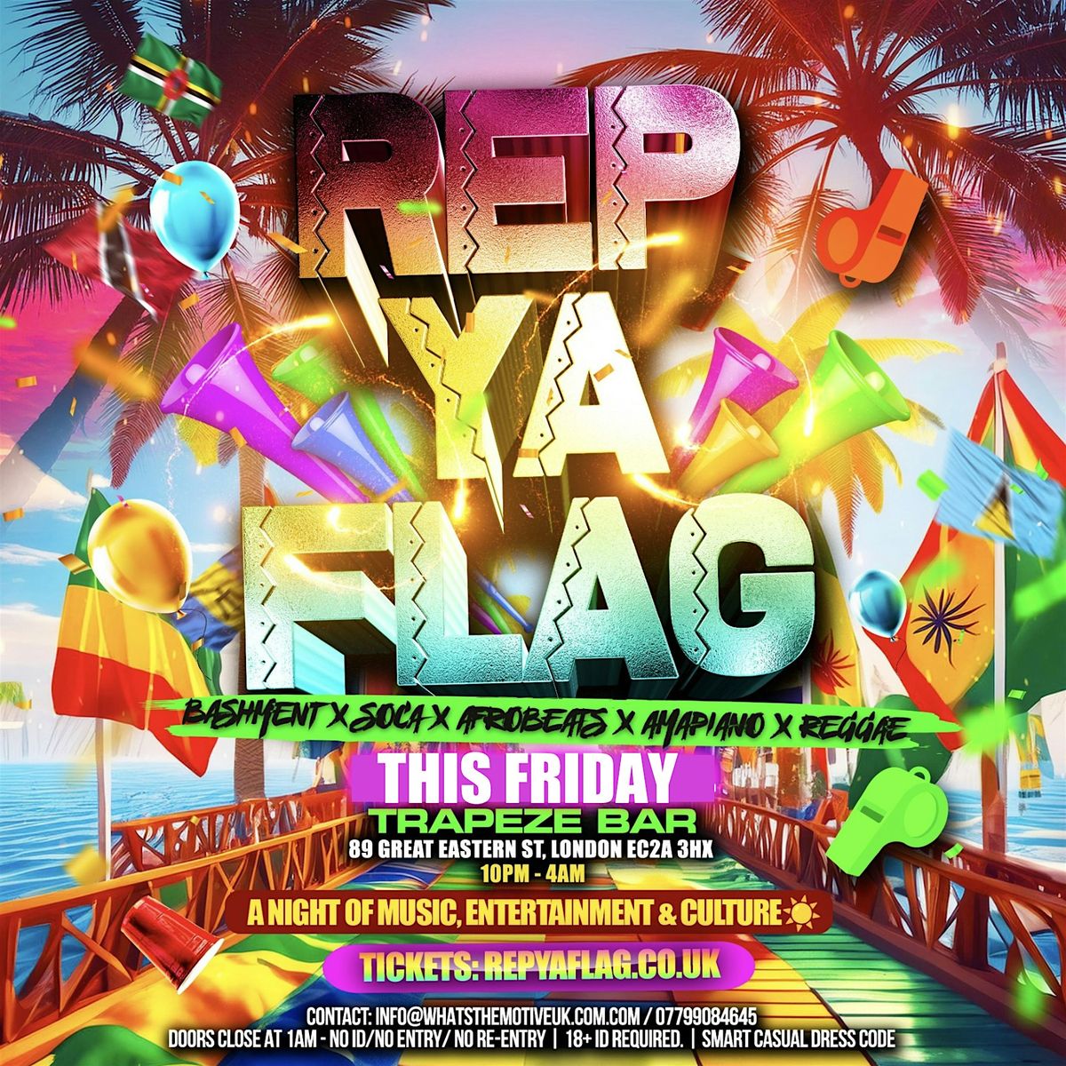 Join us for REP YOUR FLAG for the Biggest Carnival-themed experience in the UK. Expect a total celebration of music, entertainment and culture. Expect to hear the REAL Afrobeats/Bashment/Soca from across the decades to the current party bangers. 🎵 🎵 🎵