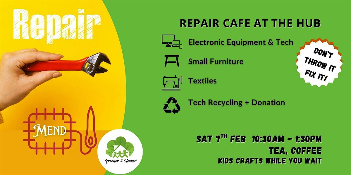 Welcome to the Repair Cafe at The Hub! Join us from 10:30 AM in The Hub, The Glades, Bromley for a fun and eco-friendly event. Bring your broken items and our skilled and experienced volunteers will help you fix them for free or a small donation if you would like to support our work!