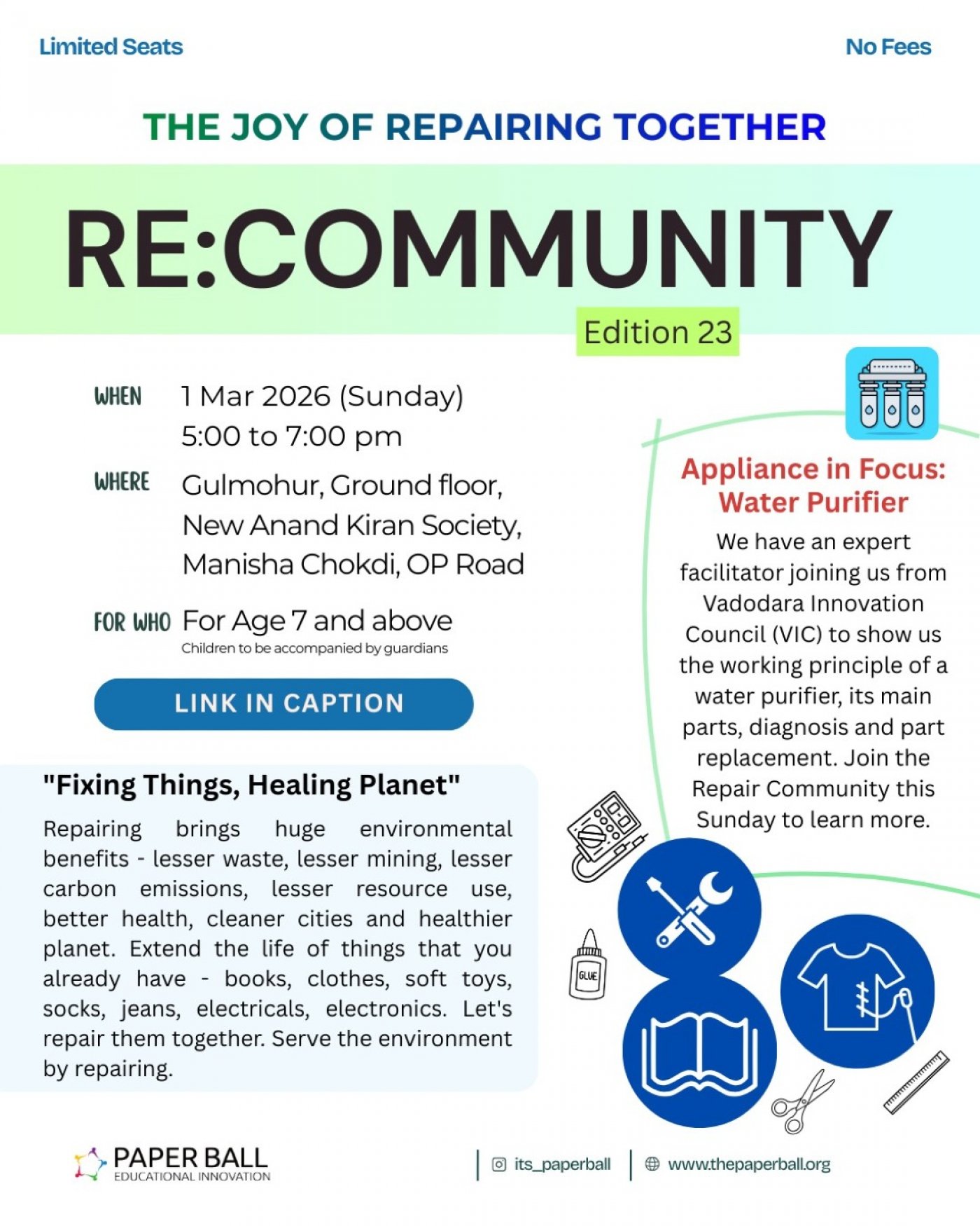 Registration : More details and sign up: https://thepaperball.org/repair-community/
