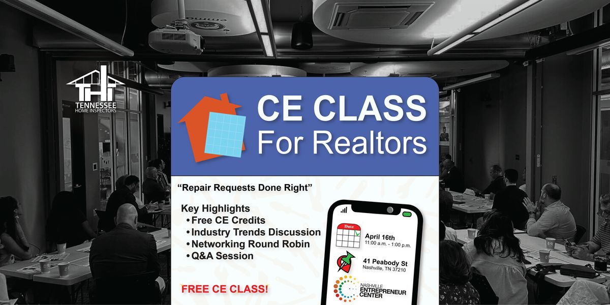 Welcome to the Repair Requests Done Right CE Class happening at the Nashville Entrepreneur Center on April 16, 2026 at 11:00 AM. Get ready to dive into the latest trends and regulations in the industry! This event is perfect for industry professionals looking to stay ahead of the game. Join us for a day of learning, networking, and growth. See you there!
