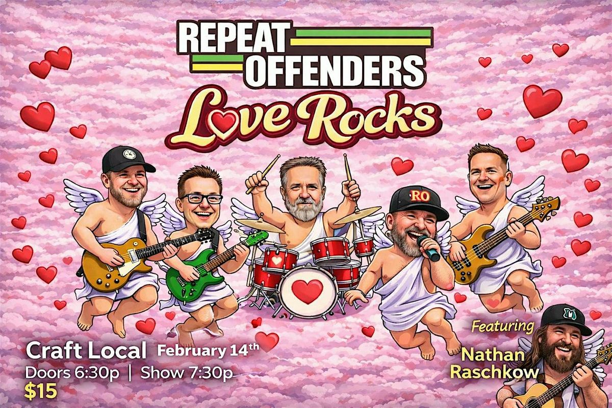 Celebrate Love at Craft Local this Valentine’s Day with Repeat Offenders featuring Nathan Raschkow! Doors open at 6:30 PM, and the show kicks off at 7:30 PM. Get your tickets for just $15 in advance or $20 at the door. LOVE ROCKS!