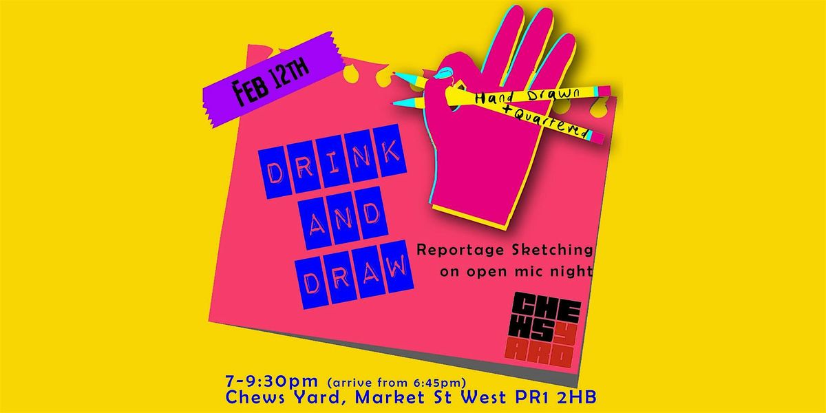 We've got an evening of reportage themed drawing during an open mic night for our next 'Hand Drawn & Quartered' meet-up. You're invited to come along and take part in a fab fun drink and draw session right in the middle of the action. You’ll be drawing from real-life, as performers sing etc. This is fast paced and fun evening!