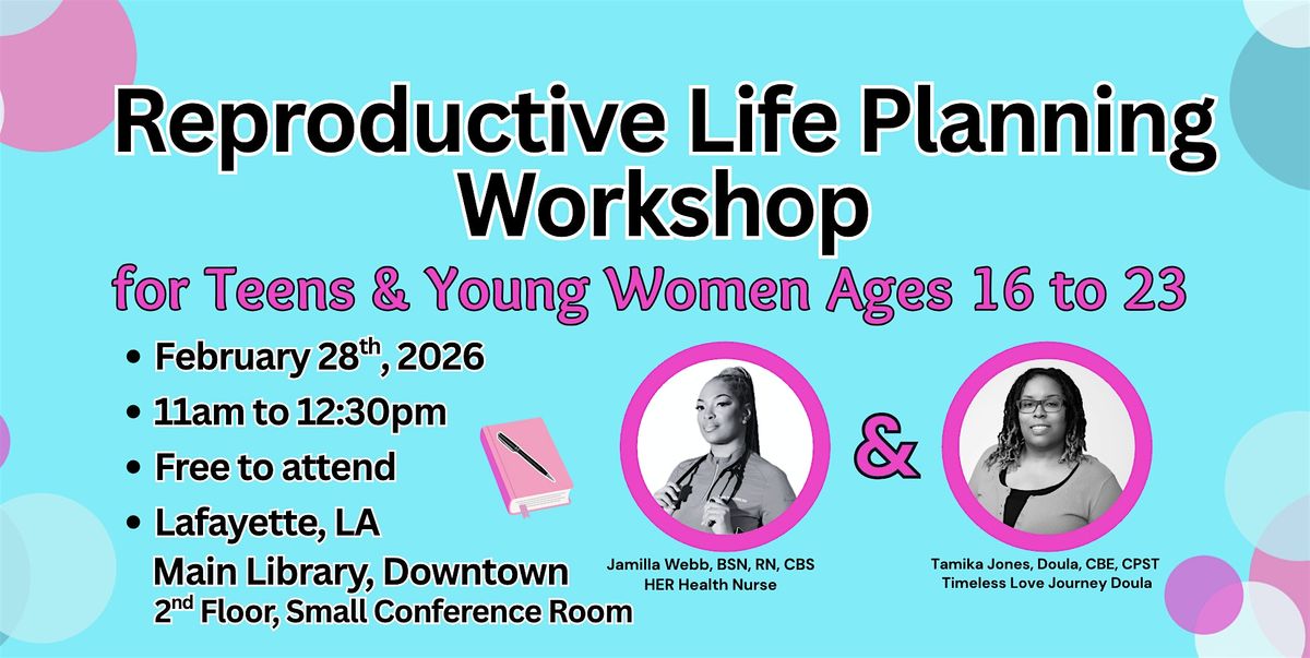In collaboration with Tamika Jones, Doula, CBE, CPST of Timeless Love Journey Doula, Jamilla Webb, BSN, RN, CBS of HER Health Nurse will lead the session. We will discuss self advocacy in healthcare settings, how abstinence, holistic family planning, and contraception can all be used as tools to support your personal goals, healthy relationships and more.