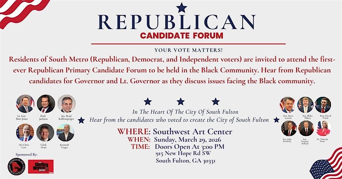 Residents of South Metro (Rep, Dem, and Ind voters) are invited to attend the first-ever Republican Primary Candidate Forum.