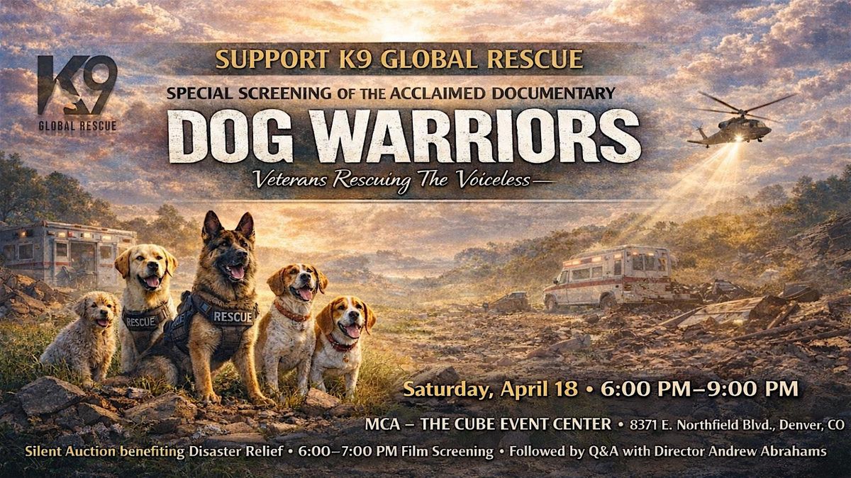 K9 Global Rescue is a veteran-run, Colorado-based nonprofit organization committed to rapid disaster response and the rescue of animals in crisis zones worldwide. Entirely donation-funded, the organization has deployed in response to multiple U.S. hurricanes, wildfires across California and Colorado, tornado outbreaks, and many countries around the world. Proceeds from this evening will directly support ongoing disaster relief operations and the lifesaving work of giving a voice to the voiceless.