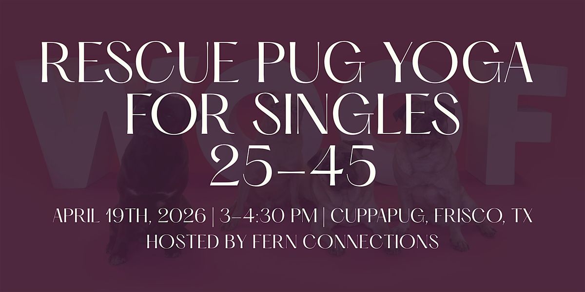🎟️Tickets start at $25 and includes 30 minutes of yoga (or as much yoga as one can do with puppies running around), pug playtime, access to pre-matchmaking services, and an amazing afternoon with other eligible singles from the DFW area!