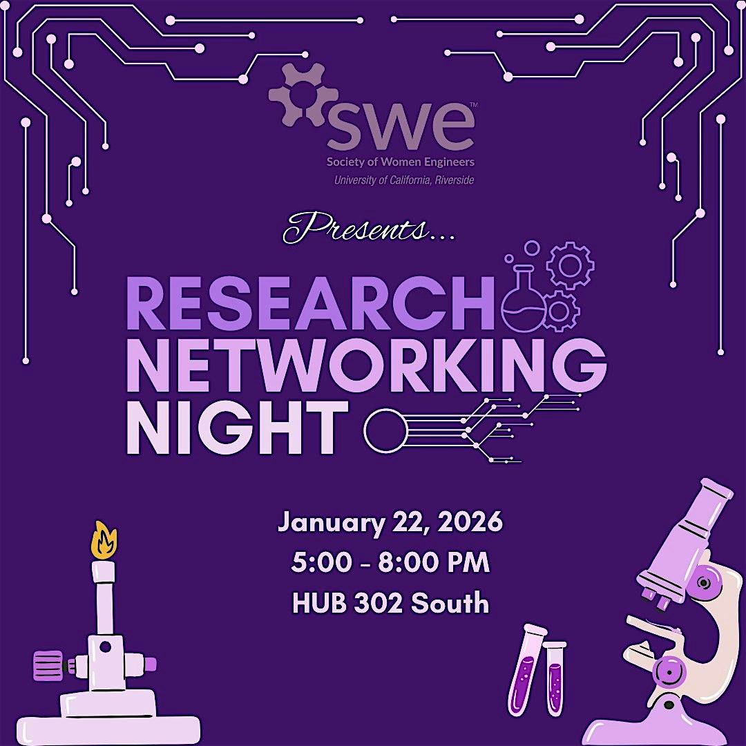 Research Networking Night 2026 will take place at HUB 302 South from 5:00 PM to 8:00 PM on January 22, 2026. This event aims to bring professors, graduate students, and undergraduate students from sciences and engineering together to discuss research opportunities.