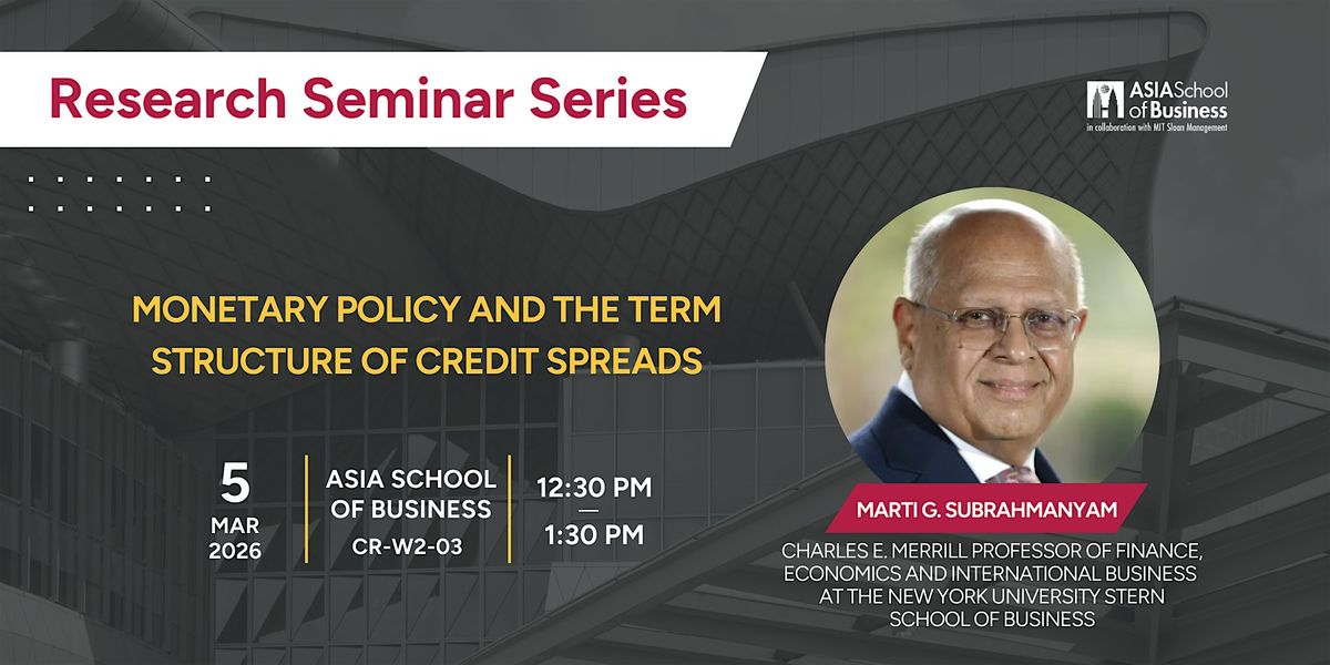 We are thrilled to invite you to the upcoming session of the Research Seminar Series at the Asia School of Business, featuring Professor Marti Subrahmanyam.