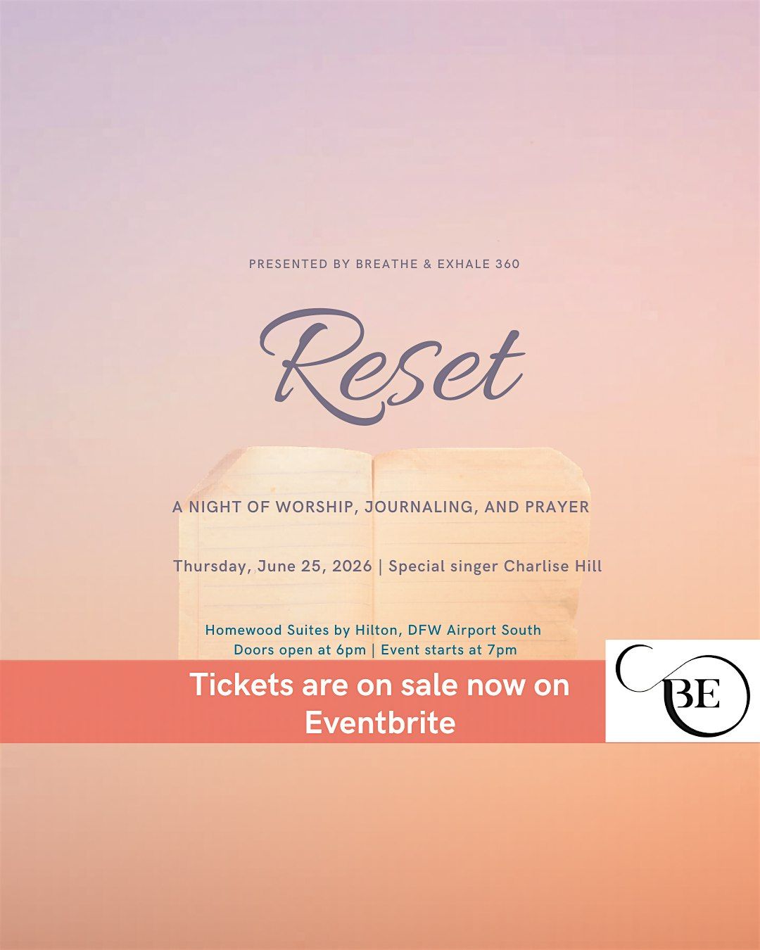 Join us for Reset: A Night of Worship, Journaling, and Prayer, an intentional gathering created for women who are ready to pause, reflect, and move forward with greater clarity, peace, and purpose.