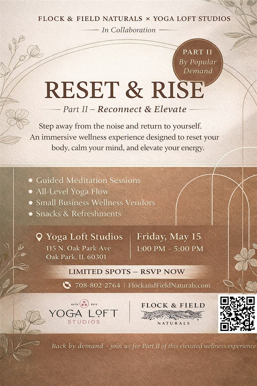 Join Flock & Field Naturals and Yoga Loft Studios for Part II of our immersive wellness experience—designed to help you reset, recharge, and reconnect with your body, mind, and energy.