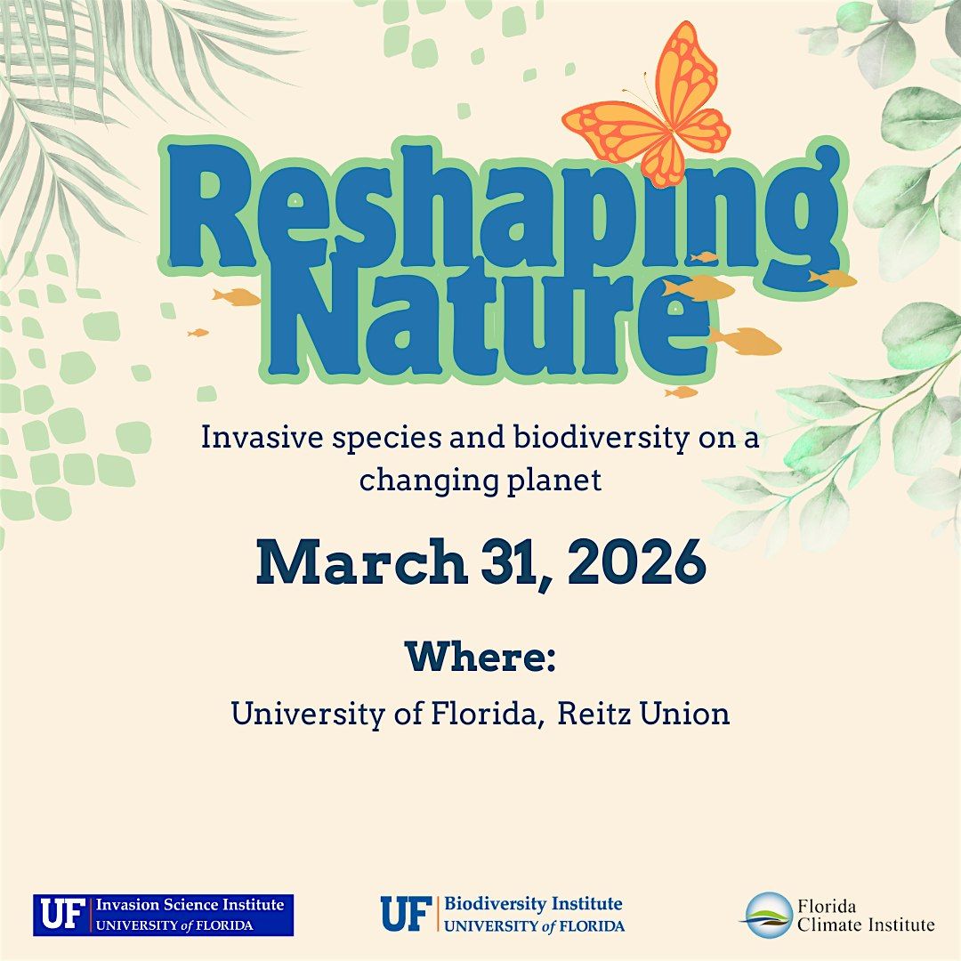 We look forward to your participation in the 2026 Reshaping Nature symposium in Gainesville, FL on March 31, 2026 at the Reitz Union. This year, Reshaping Nature is focused on invasive species and biodiversity on a changing planet.