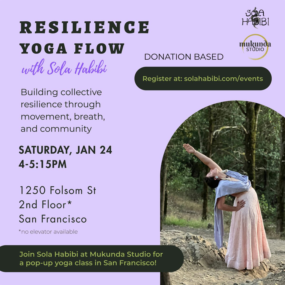 Resilience flow is a holistic intimate space to connect with community through conversation, breath, movement, song and meditation. In this class, the struggle is not yours to carry alone. You will be invited to surrender your burdens at the door, together we will hold space to process the dynamic moment we are living through in community with our breath and body.