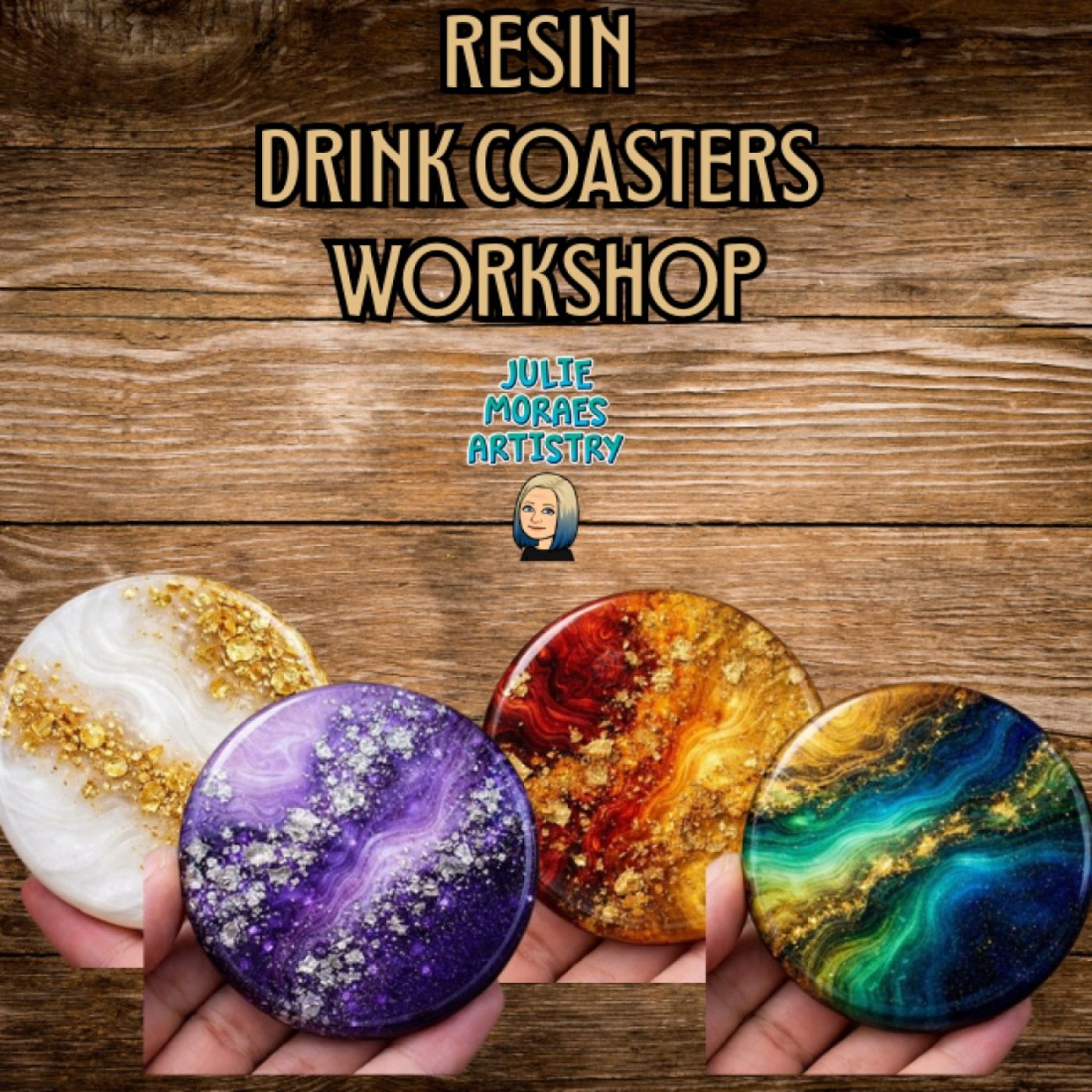 Create a set of four unique, one-of-a-kind coasters on round or square wood shapes. Choose any color scheme ~ also you can use glitter and gold, silver, and copper leaf!