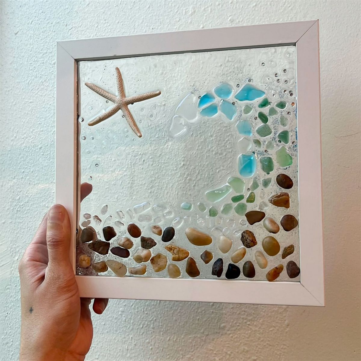 Let your imaginations run wild and get some hands-on experience working with resin! In this workshop, we will incorporate a lovely selection of summer classics such as beach pebbles, driftwood chips, smooth sea glass, sea stars, and white sand to create a beautiful frame perfect for displaying around the house or gifting! Choose from white, black, or rustic frames so it will match your favorite décor preferences.