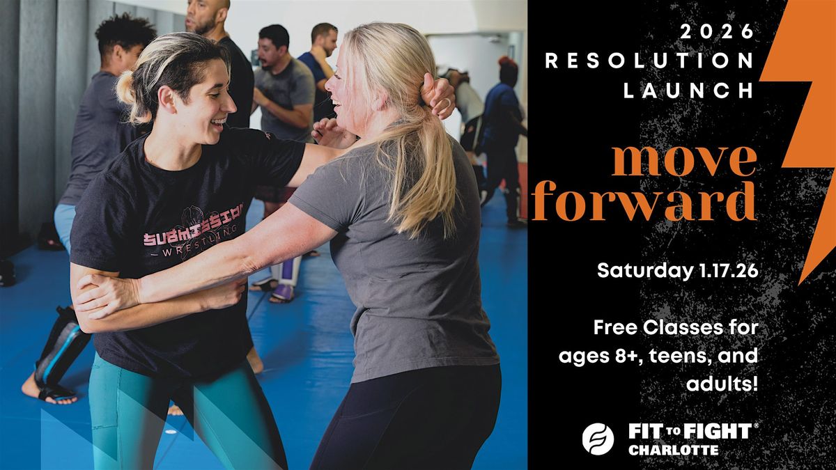 Welcome to the Resolution Launch Workshops to Build Confidence and Safety Skills! Join us at Fit to Fight® Charlotte on January 17, 2026 for classes starting at 8:30am for an experience that will launch your 2026 goals!