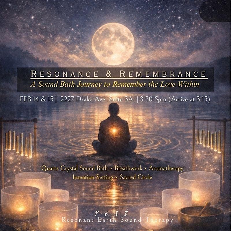 🎶 Join this Sound Bath journey whether you’re on a self-love path or have been partnered for years. All of us need gentle reminders to cultivate love from the inside out before overextending ourselves to others. Allow soothing sound vibrations from Crystal Singing Bowls, Ocean Drum, Gong, Chimes, and Native American Flute to wash away stress and down-regulate your nervous system, guiding you into deep rest and remembrance.