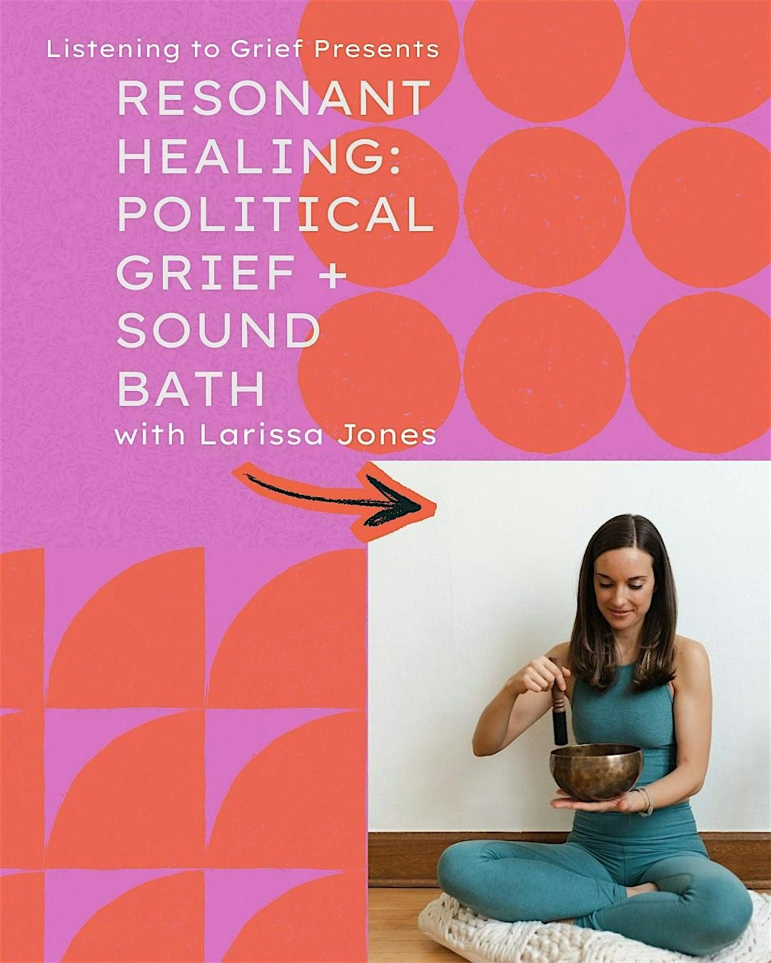 Listening to Grief invites you to a grief circle where you are free to talk openly about the polycrisis: politics, misogyny, abuse, harm to children and immigrants, climate collapse, genocide, war, plus more, and the United States’s role in all of it. In the circle we will share, meditate, and journal about our current political crisis. We close the circle with a soundbath led by Larissa Jones, yoga and meditation teacher.