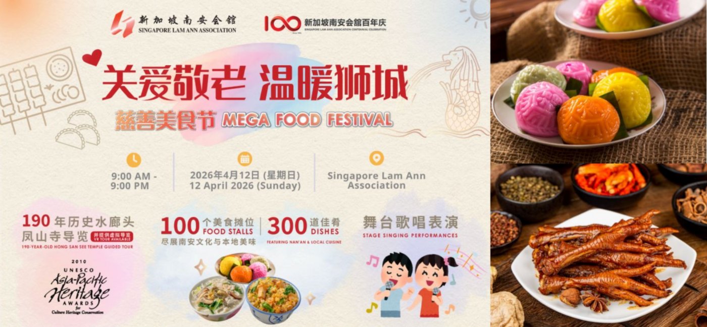 For one day only, the Singapore Lam Ann Association is inviting all Lam Ann-ians to come and join them in celebrating its milestone 100th anniversary at their landmark event “Respect the Old, Cherish the Young 关爱敬老,温暖狮城”, a one-day charity mega food festival free for all to attend!
