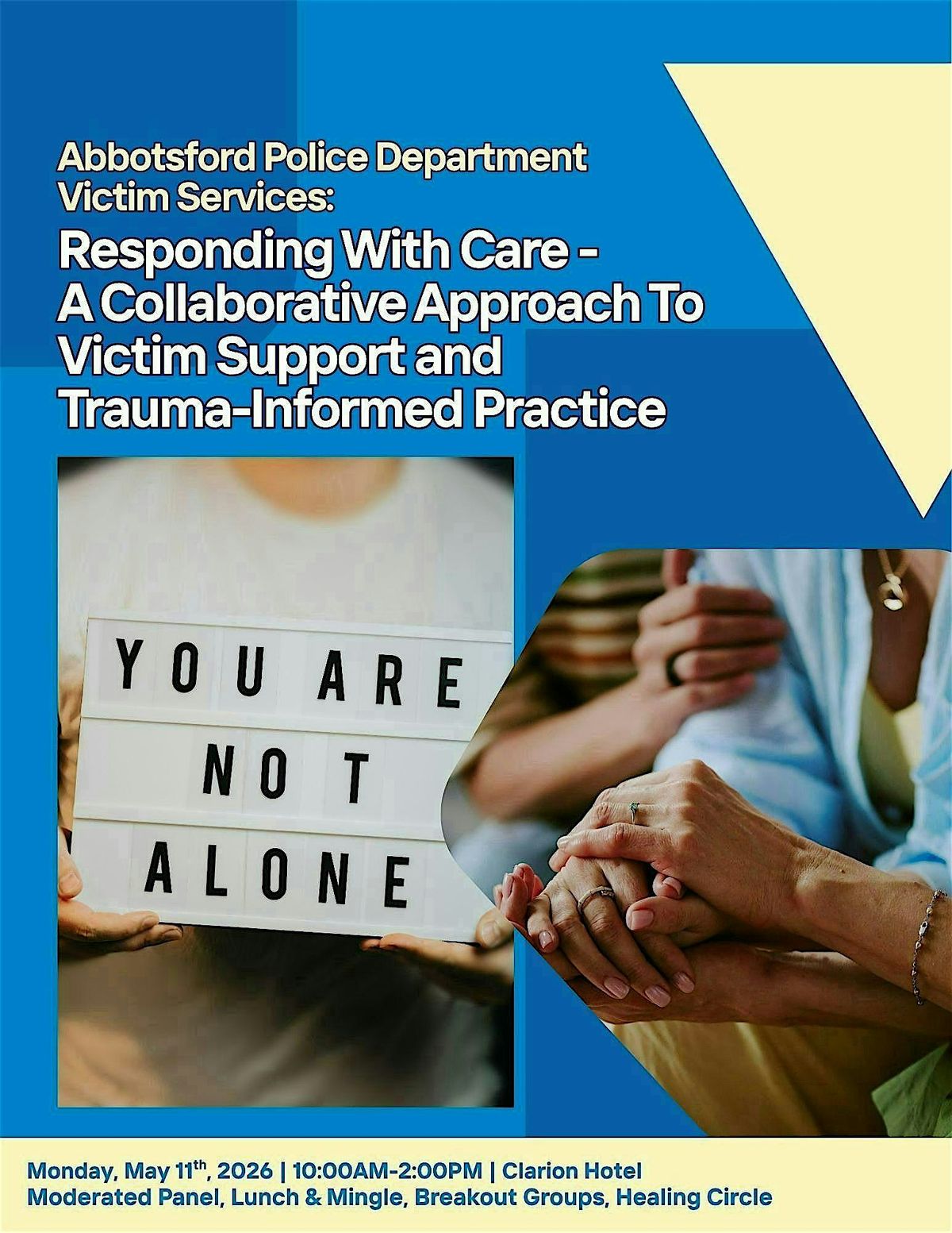 Join us as we bring together local service providers who work with victims/survivors of crime for a moderated panel discussion followed by networking and breakout groups. With a focus on addressing Sex Crimes and Intimate Partner Violence, we want to facilitate conversations between the many agencies that support victims/survivors in Abbotsford.