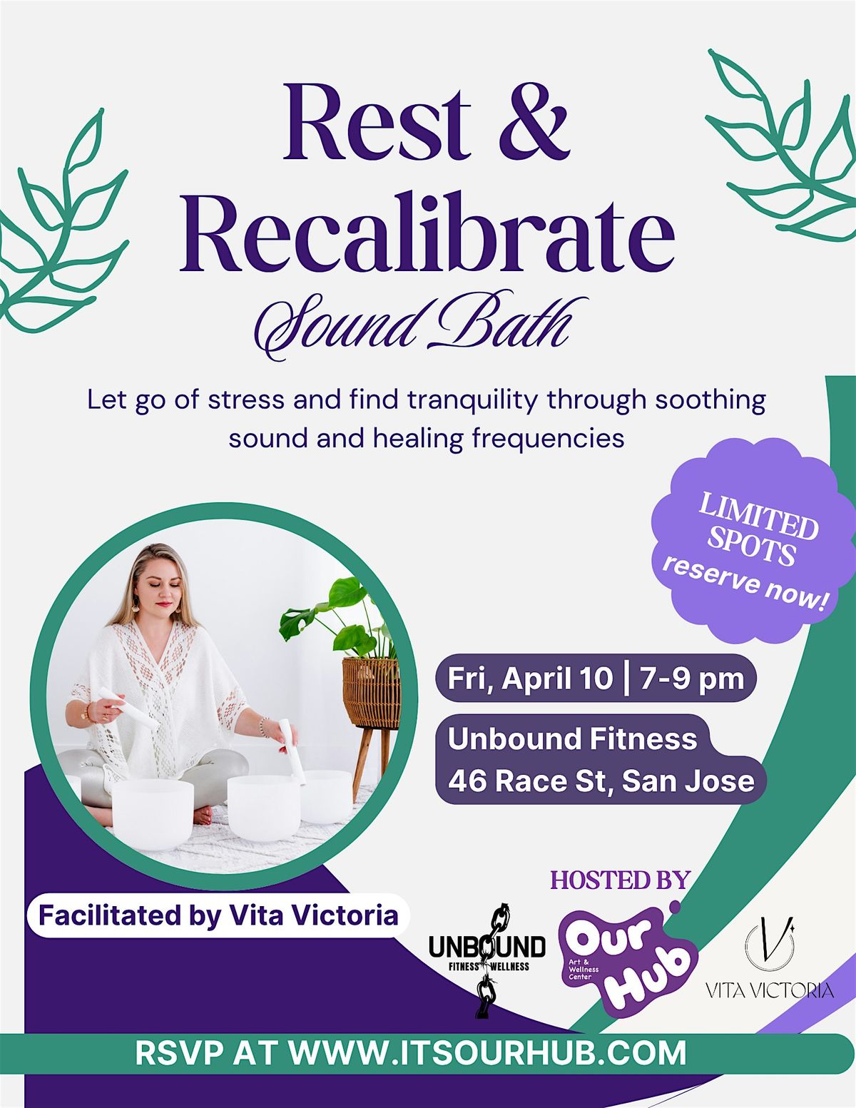 Sink into a end-of-week reset by Vita Victoria and let the world slow down around you. This immersive sound bath uses soothing tones and gentle vibrations to help quiet the mind, release tension, and bring your body back into balance.