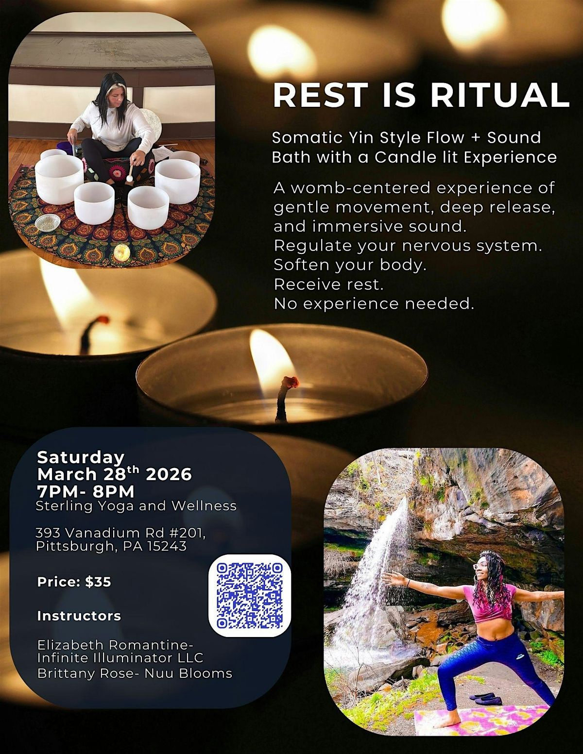 Join Brittany and Elizabeth for this Candelit Somatic Yin Flow, with Sound and Somatics to regulate your nervous system with gentle movement and deep release. No experience needed!