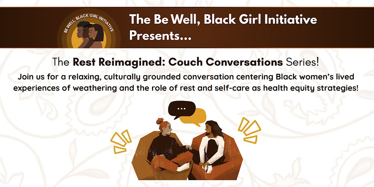 Through discussions with experts and community members, the Rest Reimagined: Couch Conversations Series aims to understand how Black women view and define rest and understand how we can prioritize rest in all forms to combat weathering and improve the health of all Black women and girls!