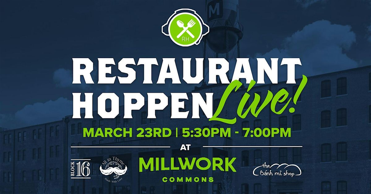 Join the live Restaurant Hoppen podcast on Monday, March 23, from 5:30-7:15PM inside the Ashton Building for good eats and a panel including Paul Urban (Block 16), Chloe Tran-Thompson (The Banh Mi Shop), and Andrew Novak (All In Thyme)!