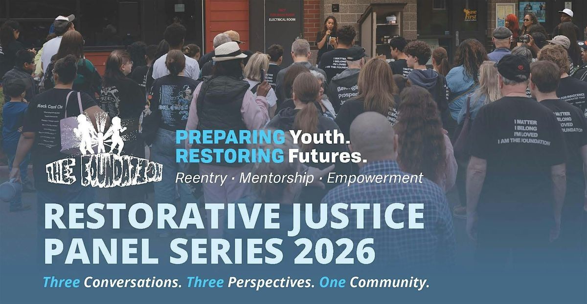 Wednesday, March 4, 2026 marks the opening of our three-part Restorative Justice Panel Series — a set of community-centered conversations designed to explore justice, healing, and accountability through multiple lived perspectives. Each panel in this series will highlight a different voice and experience, creating space for understanding, dialogue, and connection as we bring together one community around a shared goal: healing and restoration.