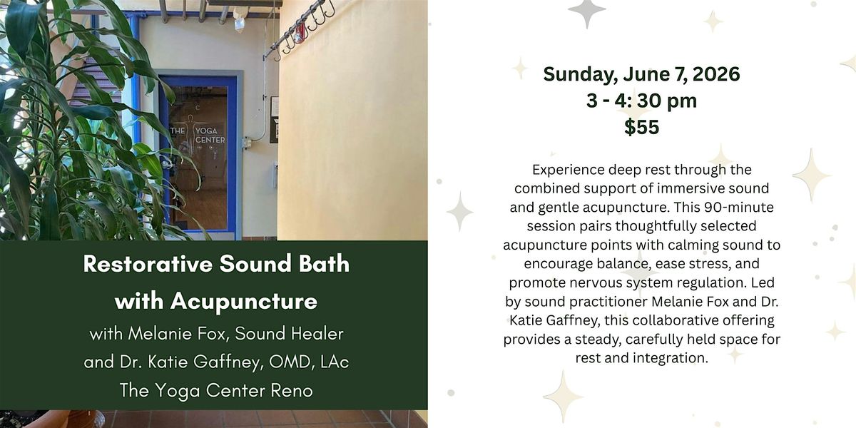 Experience deep rest through the combined support of immersive sound and gentle acupuncture. This 90-minute session pairs thoughtfully selected acupuncture points with calming sound to encourage balance, ease stress, and promote nervous system regulation. Led by sound practitioner Melanie Fox and Dr. Katie Gaffney, this collaborative offering provides a steady, carefully held space for rest and integration.