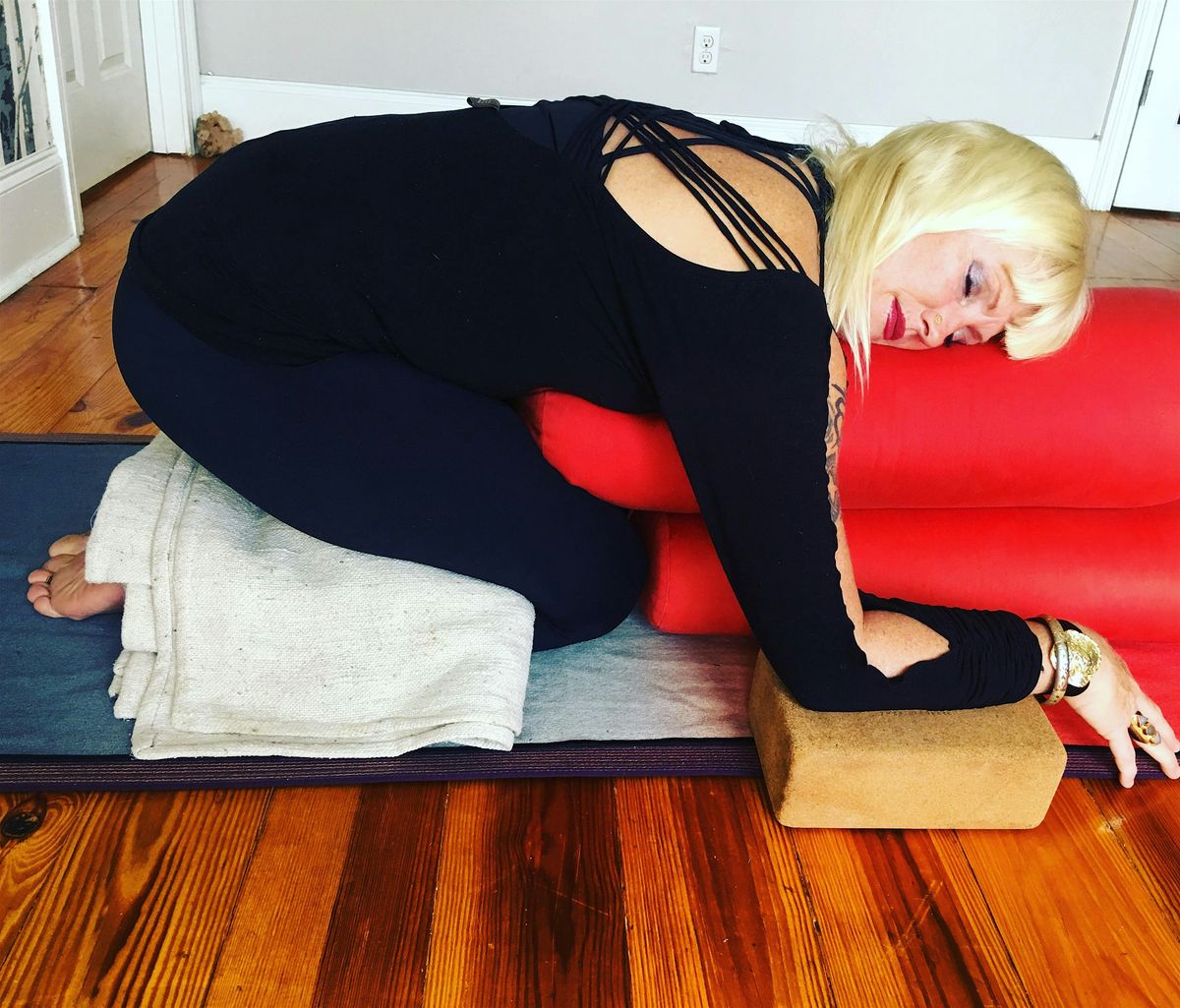 Restorative Yoga applies the use of bolsters, blankets, straps, blocks, sandbags and more in long held, low to the earth, therapeutic in nature regeneration. It is for all demographics as a deceleration of a fast paced life or aging process, bringing homeostasis and accessibility to any age, capability, injury, sickness, or level of anxiousness, depression, low immune system, compromised emotional state, mood swings and heightened nervous system.