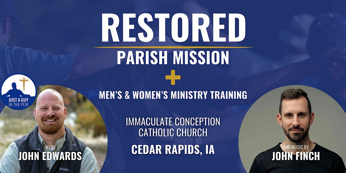 Come join us for a powerful and inspiring Parish Mission led by the renowned speaker John Edwards. Music will be provided by John Finch, Catholic worship leader and songwriter. This event will be a time of reflection, renewal, and spiritual growth. Whether you are seeking to deepen your faith or simply looking for some inspiration, this Parish Mission is open to both men, women and families. Don't miss this opportunity to be a part of something truly special. Mark your calendars and invite your friends and family to join us at Immaculate Conception Catholic Church for this transformative experience.
