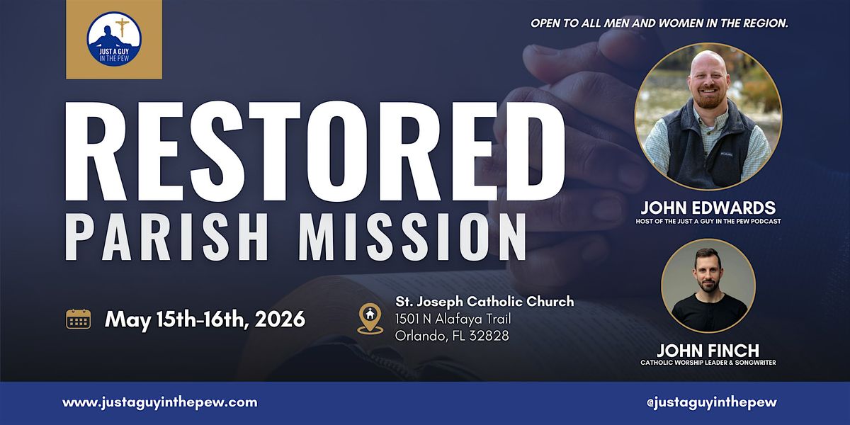 Come join us for a powerful and inspiring Parish Mission led by the renowned speaker John Edwards. Music will be provided by John Finch, Catholic worship leader and songwriter. This event will be a time of reflection, renewal, and spiritual growth. Whether you are seeking to deepen your faith or simply looking for some inspiration, this Parish Mission is open to both men, women and families. Don't miss this opportunity to be a part of something truly special. Mark your calendars and invite your friends and family to join us at St. Joseph Catholic Church for this transformative experience.