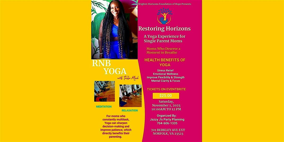 Being a mom means carrying so much, but sometimes you need a space to breathe, restore, and just be you. Restoring Horizons: A RnB Yoga Experience for Single Moms with Tasha Mack is that space.