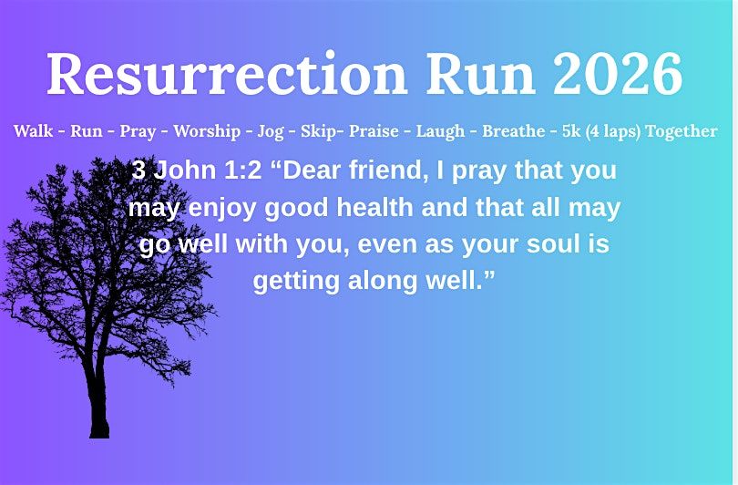 Join us to Run, Walk, Jog, Praise, Worship, Breathe, 5k (4 laps), together.