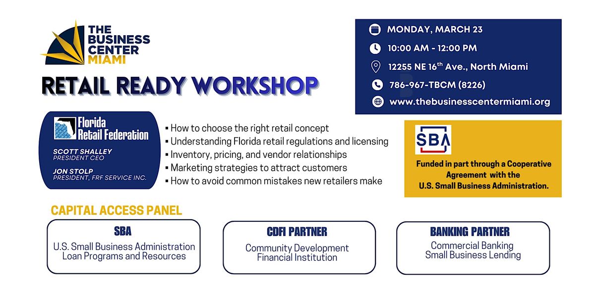 Join us for Retail Ready, an interactive session designed to help aspiring entrepreneurs learn what it really takes to open and operate a successful retail business.