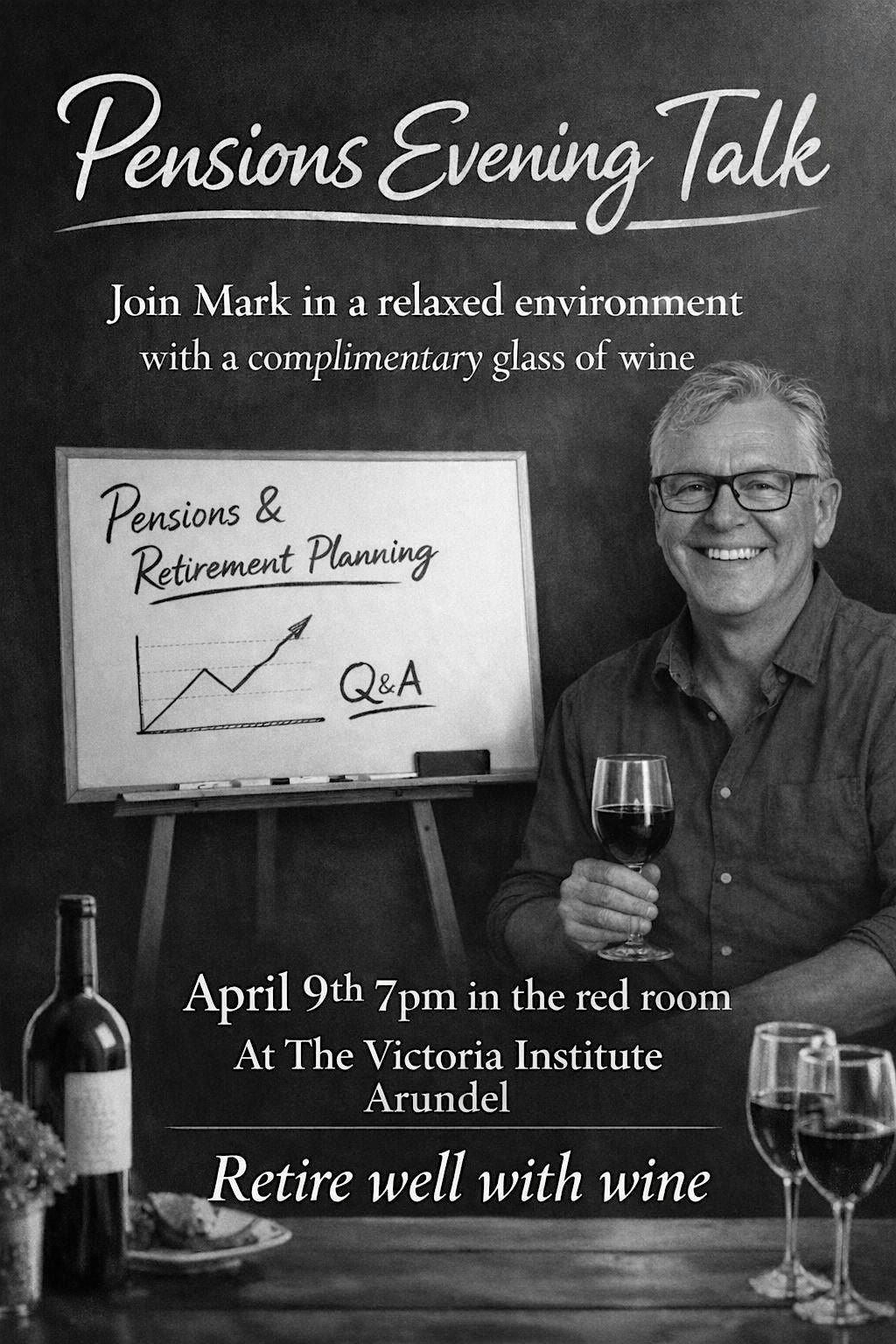 Retire Well With Wine. Thurs 9th April @ 7pm, Victoria Institute, Arundel, BN18 9DG.You may also wonder about tax efficiencies and appropriate financial vehicles to save you from HMRC’s clutches on allowances & exemptions (all legal of course!).