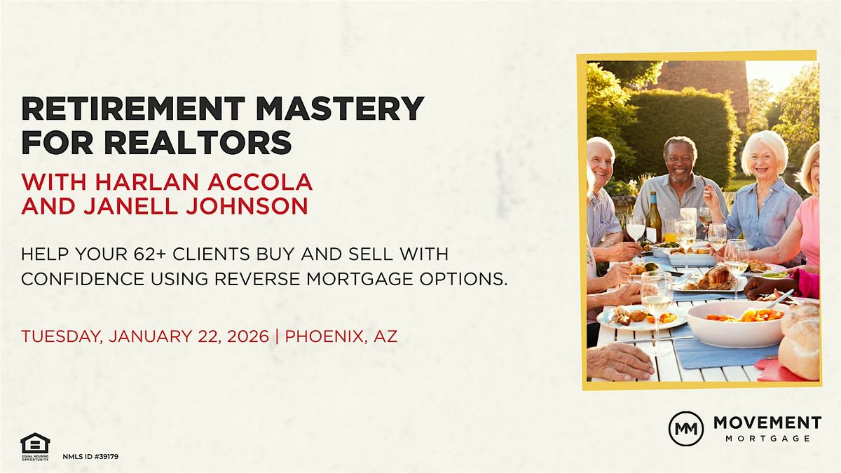 Retirement Mastery for Realtors with Movement Mortgages National Reverse Director Harlan Accola and your local Reverse Mortgage professional Janell Johnson