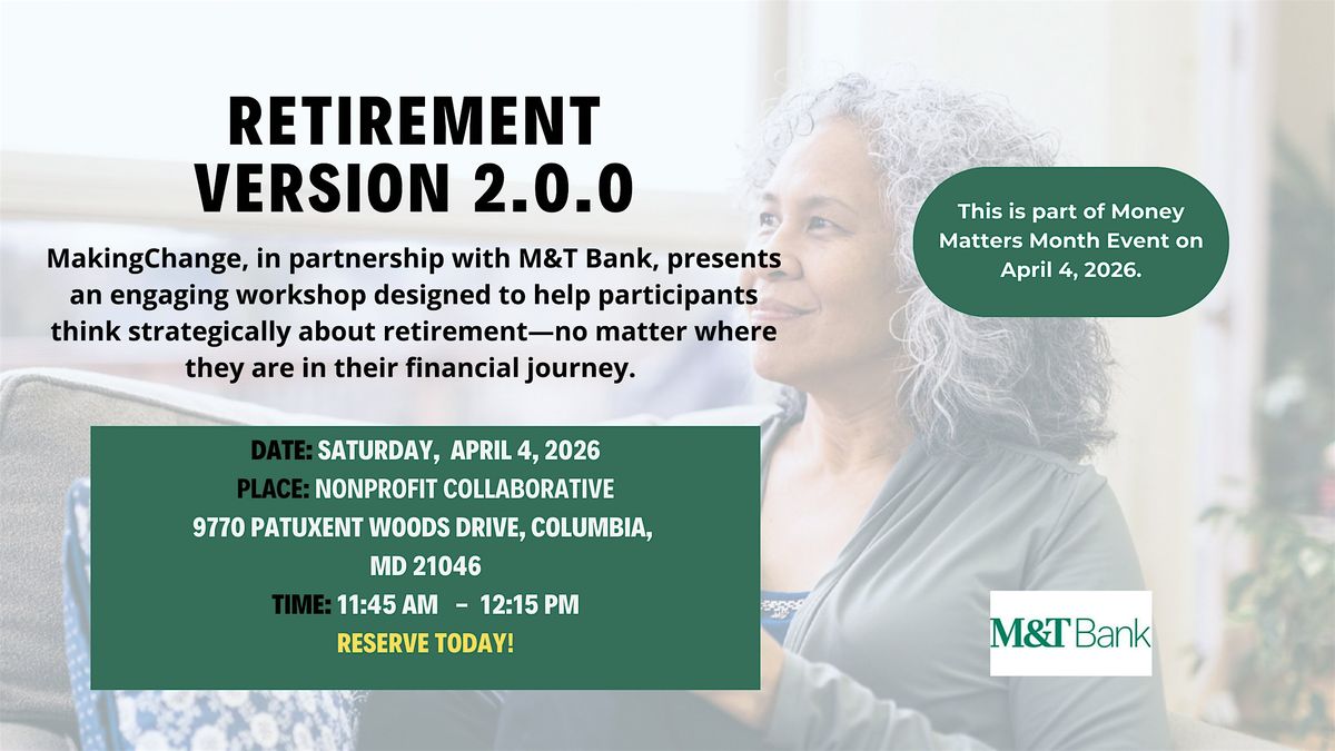 MakingChange, in partnership with M&T Bank, presents an engaging workshop designed to help participants think strategically about retirement—no matter where they are in their financial journey.
