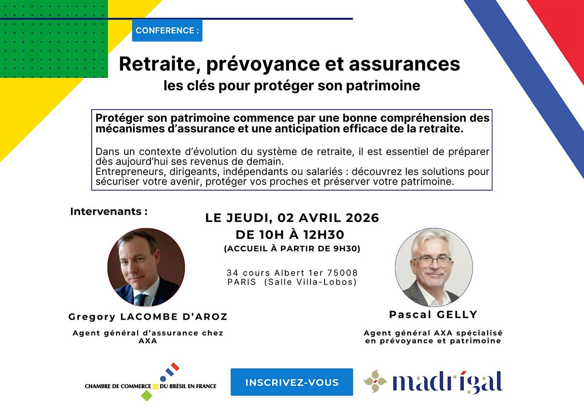 Dans un contexte d’évolution du système de retraite et d’incertitudes économiques croissantes, la protection du patrimoine devient un enjeu central pour les particuliers comme pour les dirigeants. Cette conférence proposera d’explorer les mécanismes essentiels de la retraite, de la prévoyance et des assurances afin de mieux anticiper l’avenir et sécuriser ses revenus sur le long terme. À travers une approche pédagogique et concrète, les intervenants présenteront les dispositifs existants et les stratégies permettant de protéger son patrimoine, de garantir la stabilité financière de ses proches et d’assurer la pérennité de ses projets professionnels et personnels.