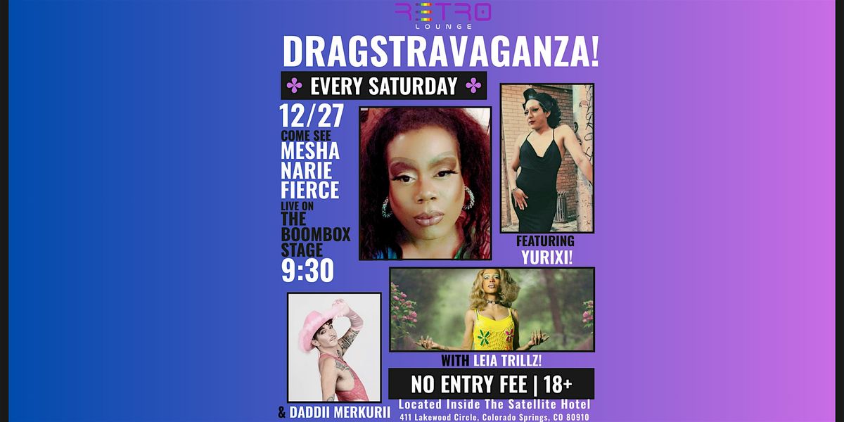 Join us every Saturday Night for DRAGSTRAVAGANZA! A free entry, 18+ drag show, only on the Retro Lounge Boombox Stage! 9:30pm