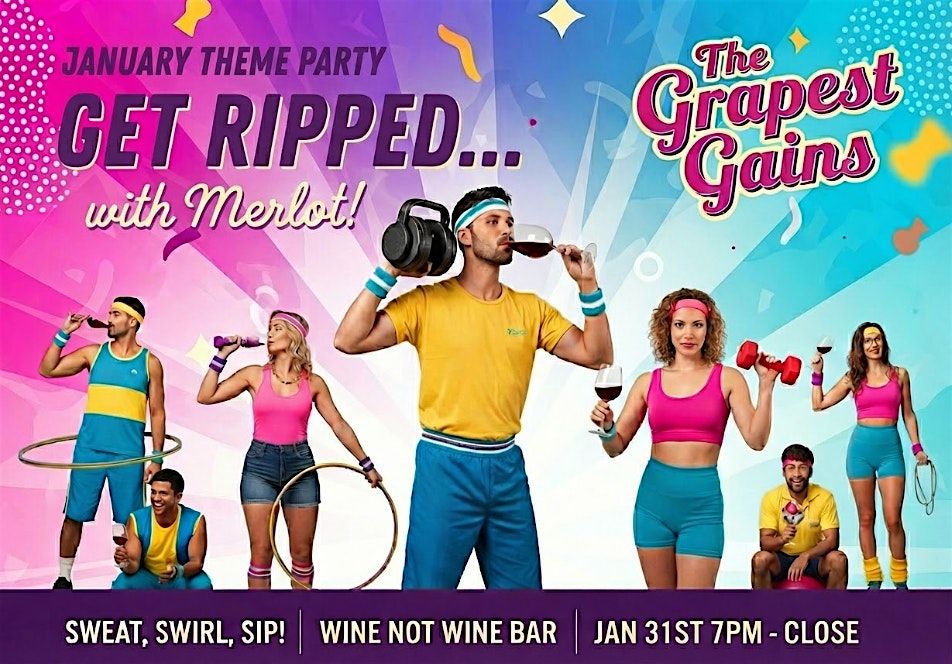Find your favorite retro workout outfit (regular workout closes will work too) and join us for another fun filled theme party at Wine Not!
