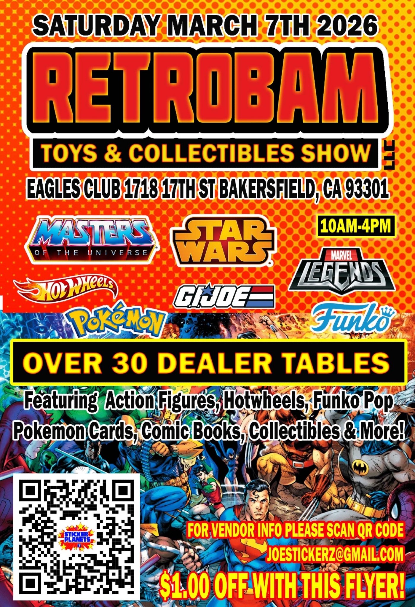 Over 35 vendor Tables filled with the RADDEST’ Toys & Collectibles ever! Come find that collectable you're looking for at RETROBAM! toy show!!