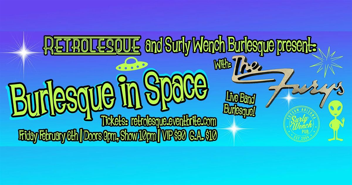 Beguiling beauties and enchanting entertainers! A bevy of Tucson and Southern Arizona’s favorite performers light up the Surly Wench Stage for a night of thrilling burlesque entertainment to live music by The Furys!