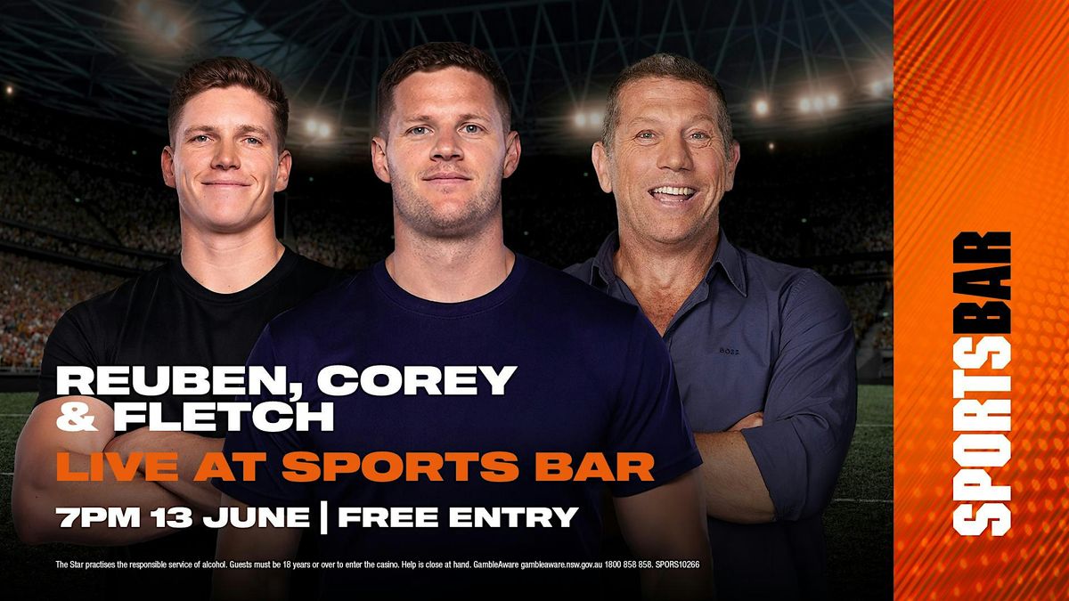 Join us for the footy and laughs on Saturday 13 June as Reuben Garrick, Corey Waddell & Fletch appear live at Sports Bar!About this Event