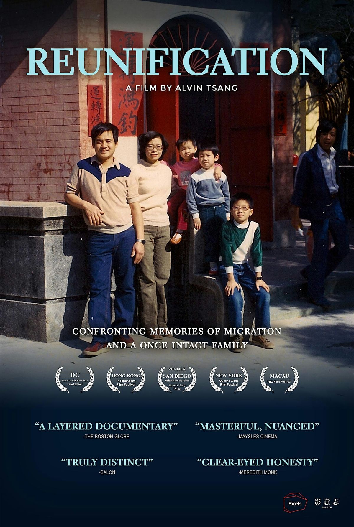 When his mother and two siblings first immigrated from Hong Kong to Los Angeles in the early 1980s, six-year-old Alvin was forced to stay behind with his working and consequently absent father. Spending the following three years often alone in an empty apartment, he longed for his family's reunification. However, upon Alvin and his father's arrival to America, that dream was utterly and permanently shattered. REUNIFICATION is AIvin Tsang's poetic and self-reflective exploration of many unresolved years that moves moodily across different channels and modes, bending into labor histories and Hong Kong's colonial trajectories. Alvin turns the camera on his own family, cautiously prodding for answers, but fully acknowledging that the only closure he can get will be from deciding for himself how to move on.