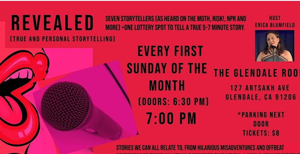 Revealed brings together the best storytellers of LA (as seen on the Moth, Risk!, Tell It, Storysmash, and more!) Stories that explore the comedy and complexity of being human, from hilarious misadventures and offbeat obsessions to those revealing moments that give you a whole new perspective.