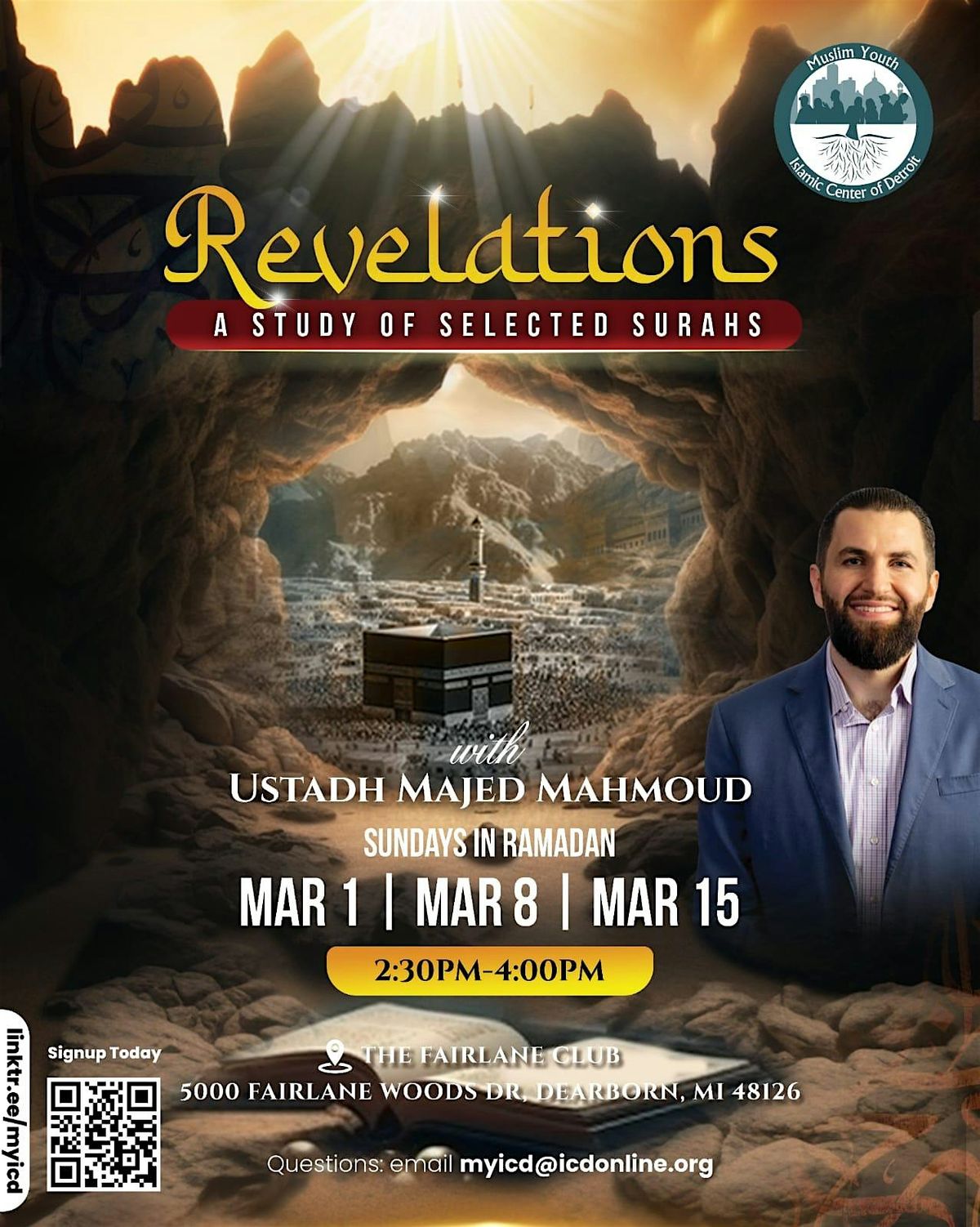 U. Majed will be discussing the reasons for revelations which is a study of selected surahs from the Quran. It is critical that very Muslim should comprehend and understand the verses that Allah sent to us in the Quran. Many of the verses of the Qur’an were revealed in response to a particular situation or question that arose in the young Muslim communities of Makkah and Madinah. By understanding the context in which particular verses were revealed, we can attain a deeper understanding of the meaning of these verses and better insight into how these verses guide aspects of our daily lives.