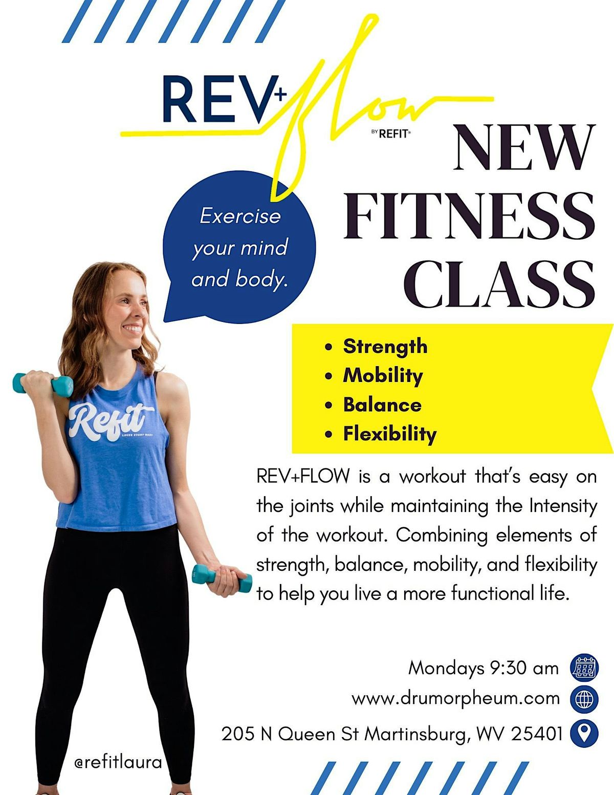 Rev+Flow is a workout that's easy on the joints while maintaining the intensity of the workout.Combining elements of strength, balance, mobility, and flexibility to help you live a more functional life.